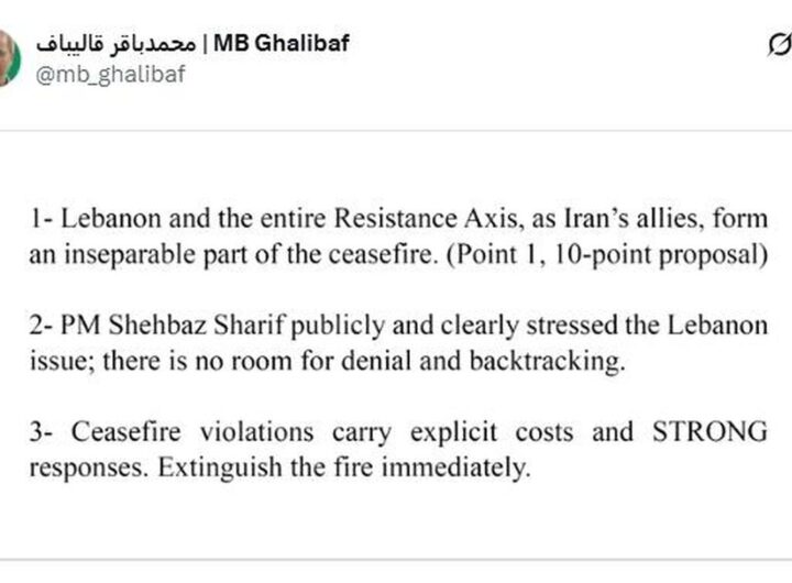 Galibaf, Lübnan'a yönelik saldırılara sert karşılık geleceğini belirtti ve ateşkes ihlallerine dikkat çekti.