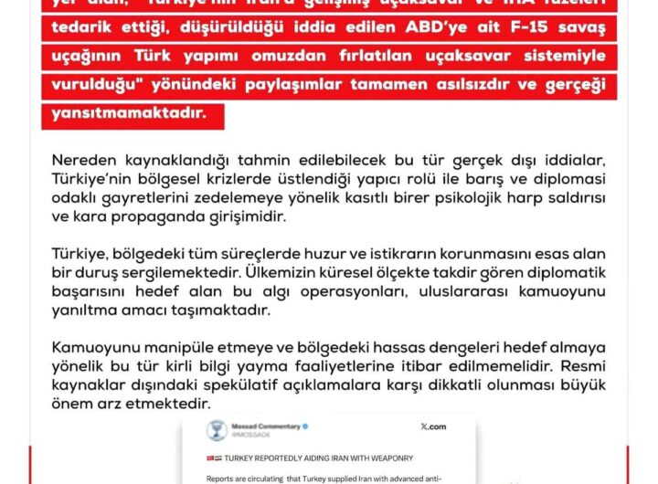 DMM, Türk sisteminin F-15 uçağını vurduğuna dair iddiaları asılsız olarak nitelendirdi.