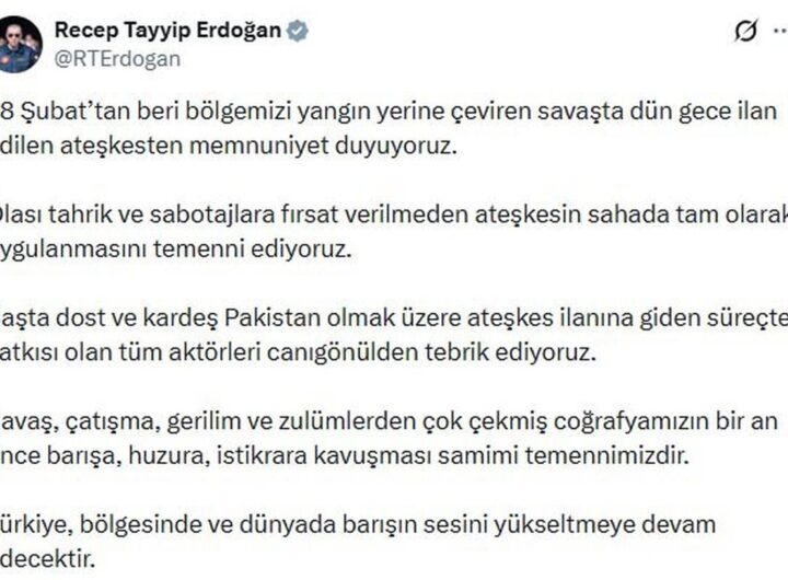 CUMHURBAŞKANI Recep Tayyip Erdoğan, "28 Şubat'tan beri bölgemizi yangın yerine çeviren savaşta dün gece ilan edilen ateşkesten...