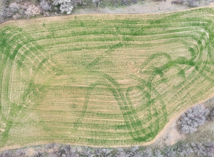 Isparta'nın Yalvaç ilçesinde arpa ve buğday tarlalarında, ekim sürecinin ardından tohumların çimlenmesiyle ilginç geometrik şekiller oluştu. Bölgede...