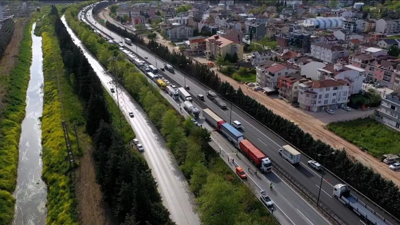 Sol şeritte bulunan tırların kaldırılması için çalışmaların sürdüğü öğrenildi.