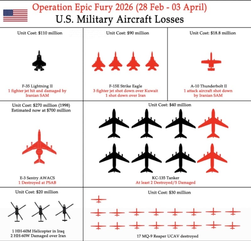 Operation Epic Fury kapsamında ABD Hava Kuvvetleri’nin uğradığı kayıpların maliyetinin milyarlarca doları bulduğu değerlendiriliyor.