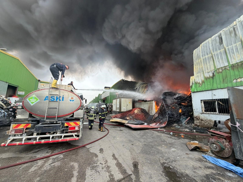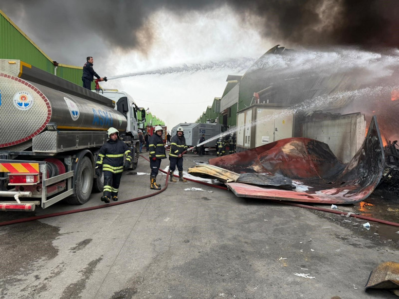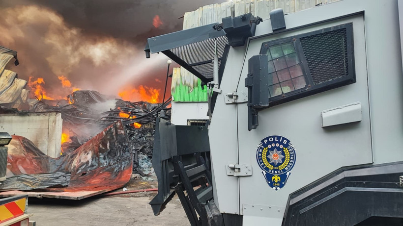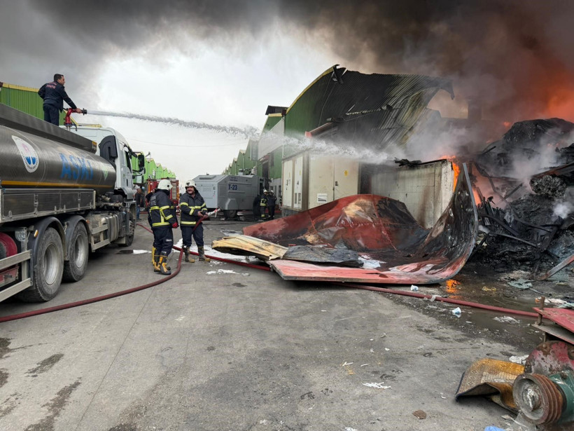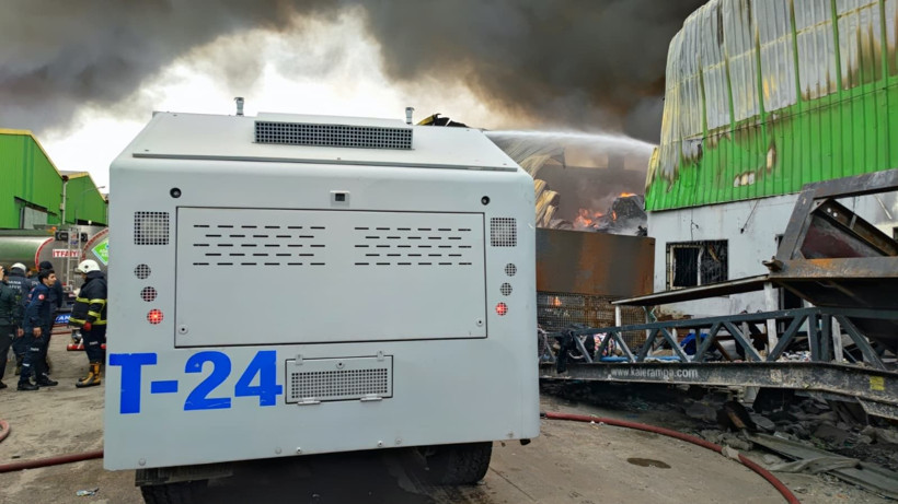 Ekipler, tesisi saran alevlerin çevredeki iş yerlerine yayılmadan kontrol altına alınabilmesi için çalışma başlattı.