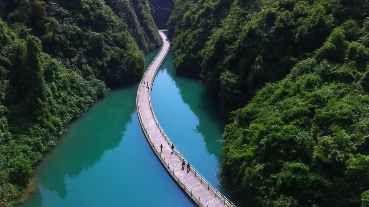 Bölgedeki Qingjiang Nehri üzerinde inşa edilen ve “Hayaller Köprüsü” adıyla anılan 400 metrelik yüzen yapı, ziyaretçilerine suyun üzerinde araç sürme deneyimi sunuyor. Ancak bu eşsiz mimari, geçtiğimiz yıllarda yaşanan trajik bir kazayla güvenlik tartışmalarının odağı haline geldi.