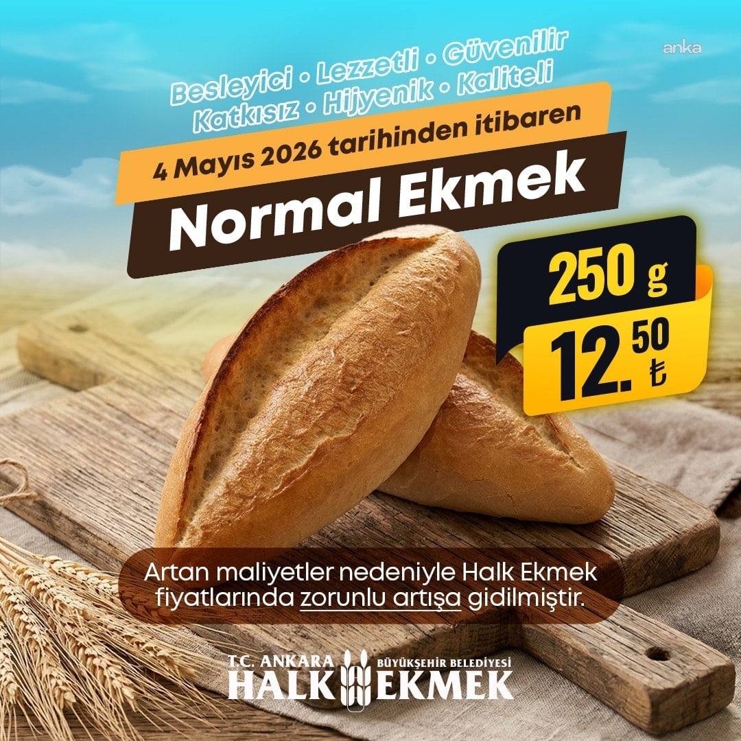 ABB Halk Ekmek’in sosyal medya hesabından yapılan paylaşımda “4 Mayıs 2026 Pazartesi gününden itibaren 250 gramlık normal ekmeğimiz tüm Halk Ekmek satış noktalarında 12,50 TL’den satılacaktır. Kamuoyuna saygıyla duyurulur” ifadeleri kullanıldı.