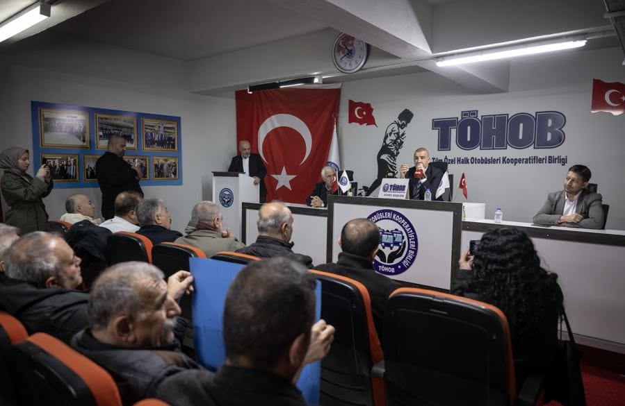 Tüm Özel Halk Otobüsleri Kooperatifleri Birliği (TÖHOB) Genel Başkanı Kurtuluş Kara, şehir içi toplu taşıma hizmeti veren otobüs esnafıyla Başkent İlçeler Terminali’nde basın açıklaması yaptı.