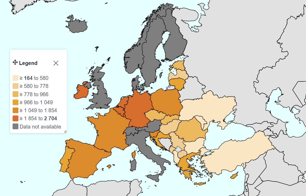 | 1 | Lüksemburg | 2.704 |