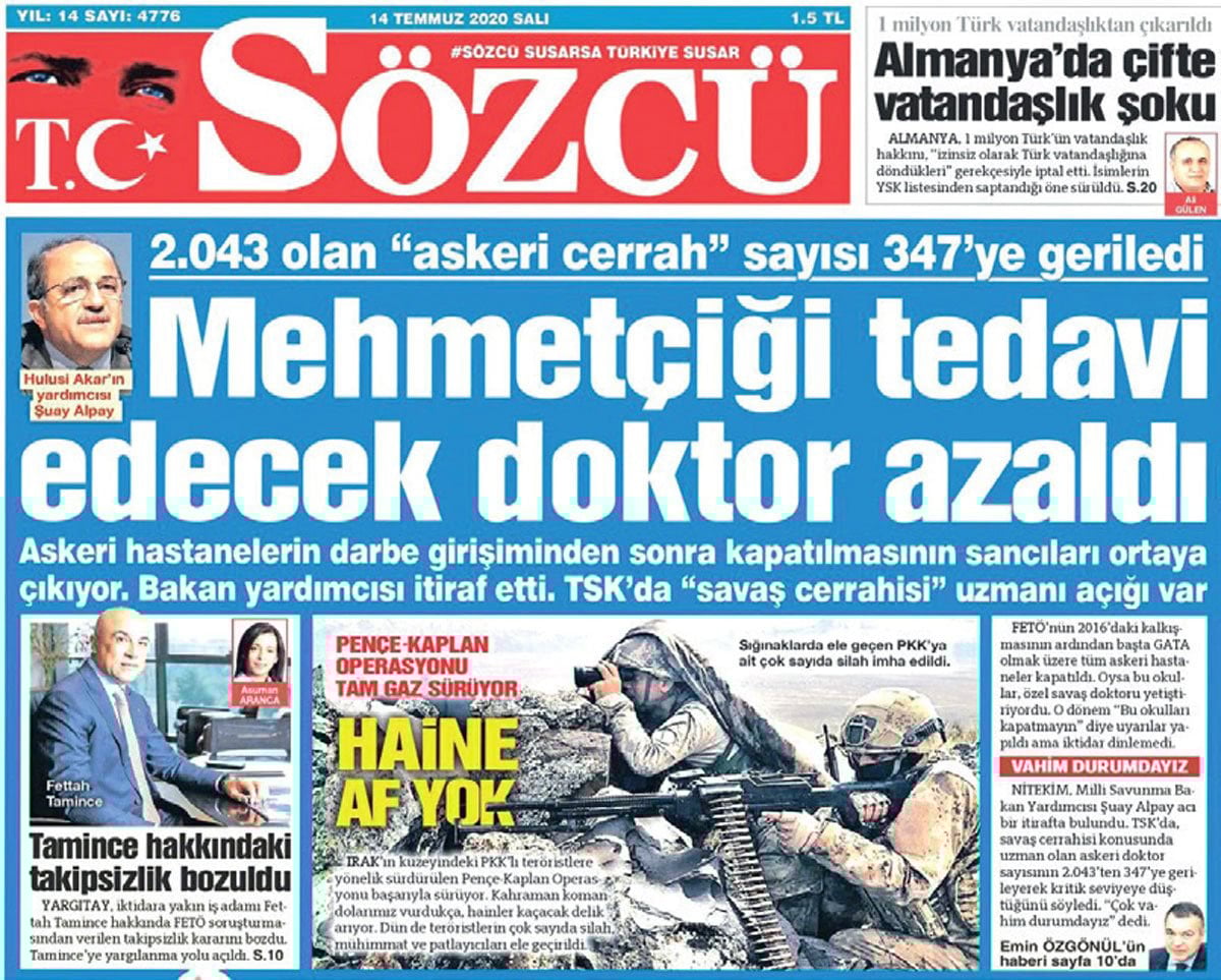15 Temmuz sonrası 26 şehirdeki 32 askeri hastane kapatıldı ve sınır ötesi operasyonlara savaş cerrahisi uzmanı açığı doğdu. Askeri Hastanelerin yeniden faaliyete geçeceği açıklandı ancak dün yayınlanan yeni Subay-Astsubay yönetmeliğinden “Askeri Hastaneler” ifadesi çıkarıldı.