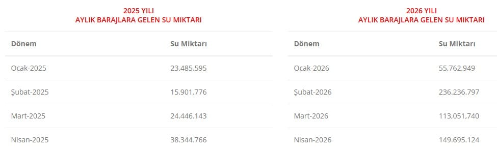Ocak ve mart aylarındaki yoğun akışın ardından nisan ayı içerisinde havzalara ulaşan su miktarının 149 milyon 695 bin metreküpü geçmesi başkentin su rezervlerini ayağa kaldıran temel faktör oldu.