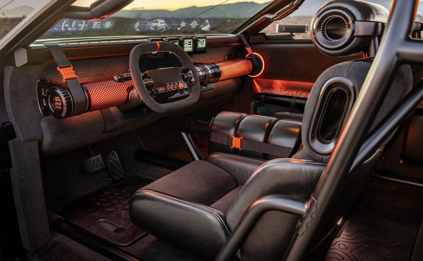 . Araç Kaliforniya’nın çöl ve okyanus manzaralarından esinlenen Dune Gold Matte rengiyle dikkat gayet şık olmuş. Keskin gövde çizgileri ve geniş fender yapıları, zorlu arazilere hazır olduğunu gösteriyor.
