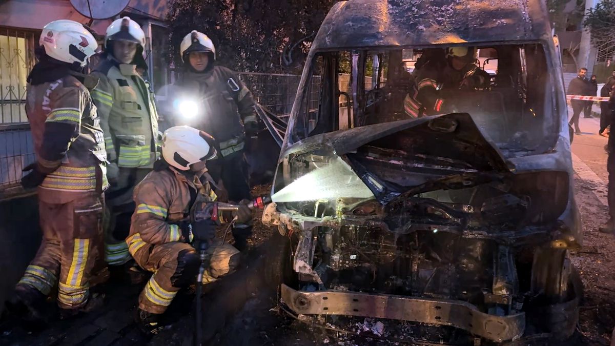 Yanan servis minibüsünün şoförü Hidayet Güven, “Arabayı park ettim, yukarı çıktım. Komşular ‘araba yanıyor’ diye haber verdi. Araba cayır cayır yandı” dedi.