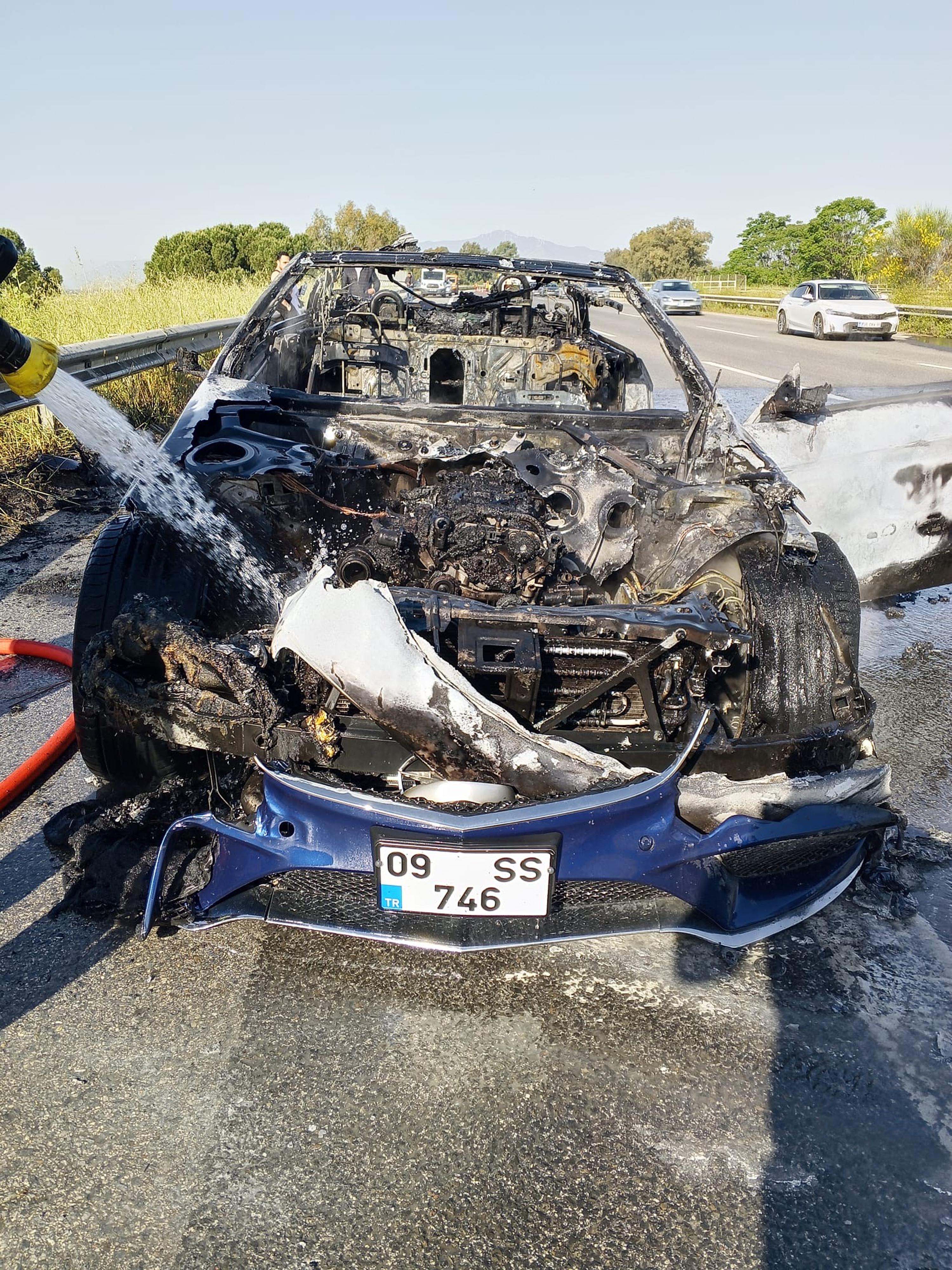 Motor kısmından çıkan alevler, kısa süre içinde tüm aracı sararken otomobil alev topuna döndü. Çevredeki vatandaşların ihbarı üzerine, olay yerine itfaiye ekipleri sevk edildi.