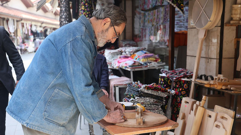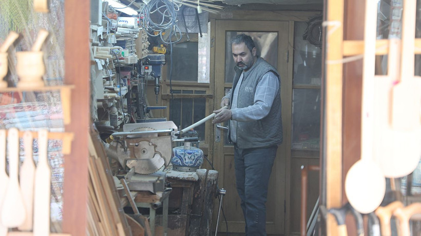 Konya’da bulunan Tarihi Bedesten Çarşısı’nda ahşap ustalığı yapan 77 yaşındaki Muzaffer Büyüközkan ile 50 yaşındaki oğlu İsmail Büyüközkan, mesleklerini birlikte sürdürüyor. Baba oğul küçük dükkanlarında, Konya’da çok yaygın olan etliekmek fırınlarında kullanılan fırın kürekleri başta olmak üzere, evde kullanılan yer sofrası, merdane, oklava, tahta kaşık gibi mutfak malzemeleri, çocuklar için ahşap oyuncaklar, takunya ve baston yaparak ahşaptan ürünler üretiyor.