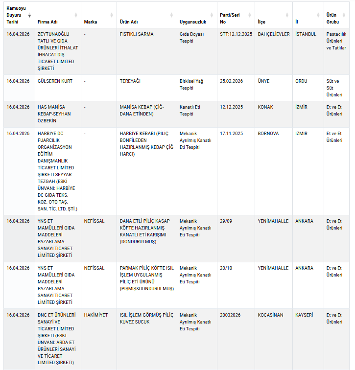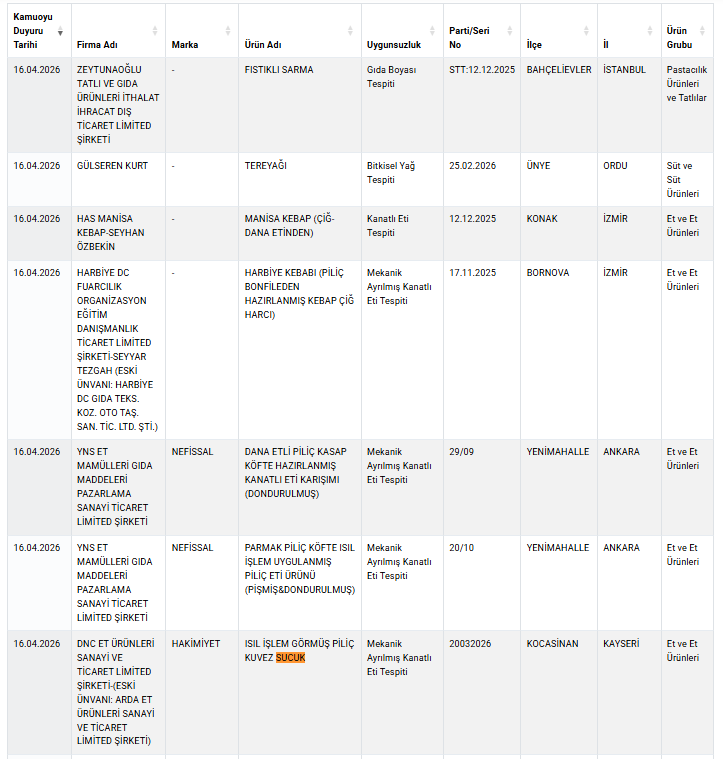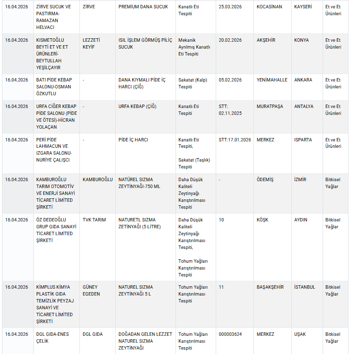 Bakanlık tarafından gerçekleştirilen denetimler sonucunda, et ürünleri grubunda beyan edilen içerik ile gerçek arasında farklılıklar olduğu saptandı.
