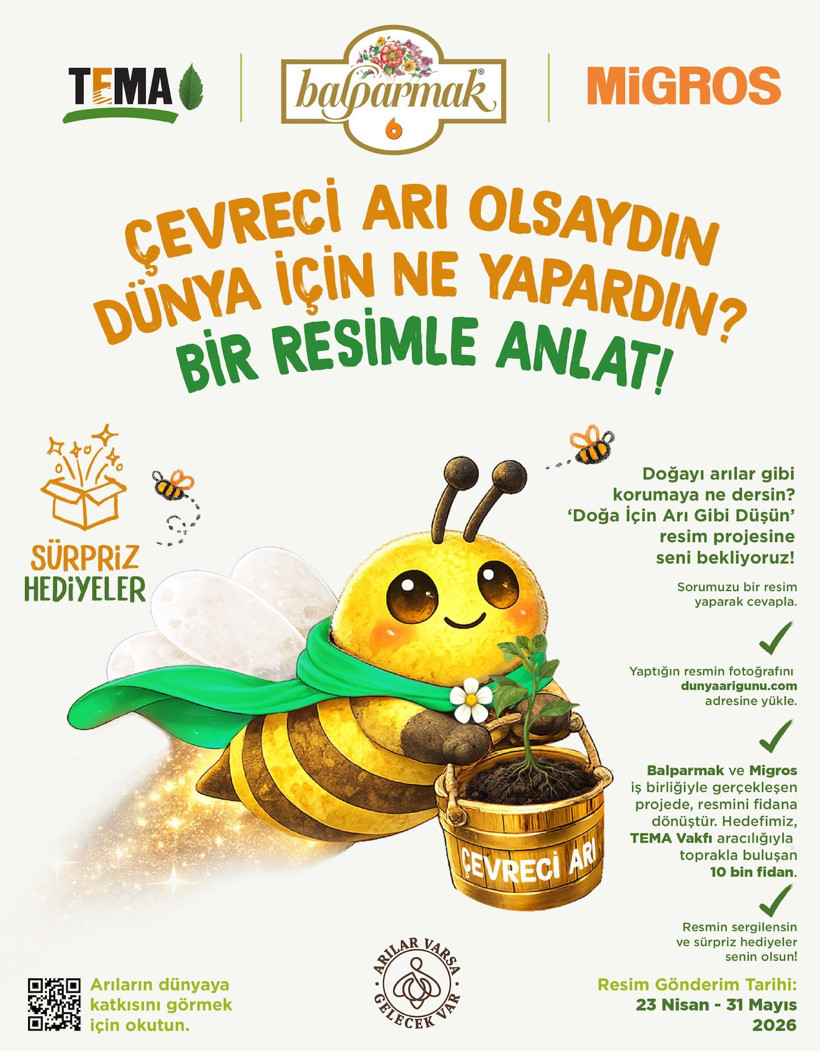 Balparmak’ın, Migros ve TEMA Vakfı iş birliğiyle yürüttüğü projede bu yıl çocuklara “Çevreci arı olsaydın, dünya için ne yapardın?” sorusu yöneltiliyor. Çocuklardan bu soruya hayallerini resme dökerek yanıt vermeleri bekleniyor.