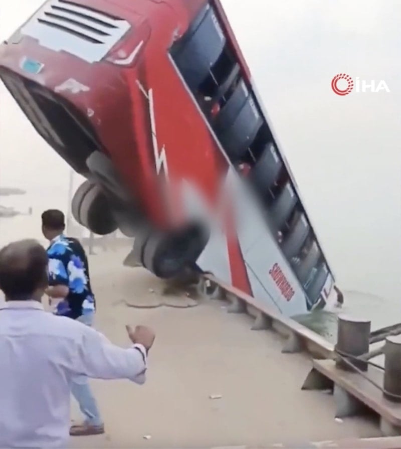 En az 40 yolcusu bulunan bir yolcu otobüsü, başkent Dakka’ya 100 km mesafedeki Rajbari bölgesinde bulunan Daulatdia’de feribota doğru ilerlediği sırada Padma Nehri’ne düştü.