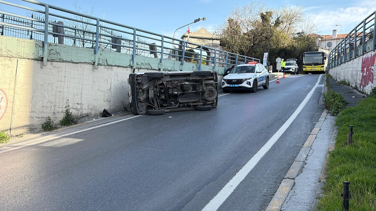 Yan yatan aracın bulunduğu noktada trafik bir süre kontrollü olarak sağlandı. Ekiplerin çalışmasının ardından araç bulunduğu yerden kaldırılırken, yol yeniden normal akışına döndü. Kazayla ilgili inceleme başlatıldığı ifade edildi. (DHA)
