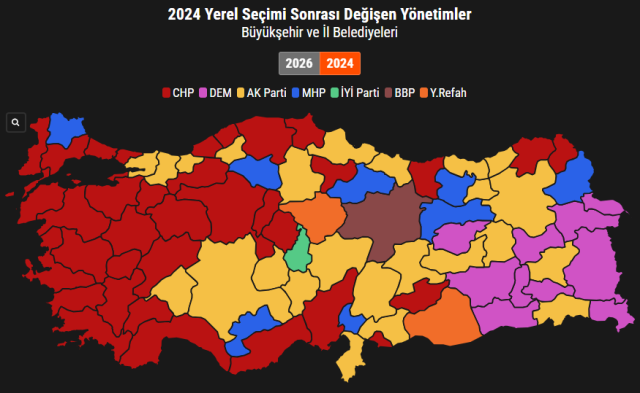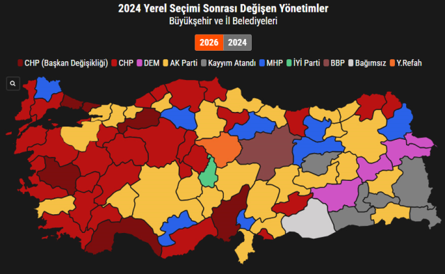 31 Mart 2024 yerel seçimlerinde muhalefet partilerinin kazandığı 64 belediye seçim sonrası AK Parti’ye geçti.