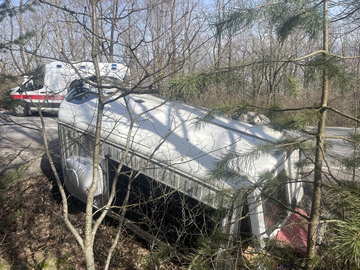 Bolu‘da devrilen minibüsün sürücüsü hafif yaralandı.