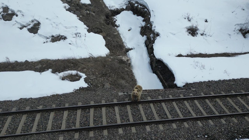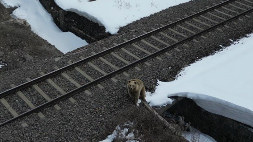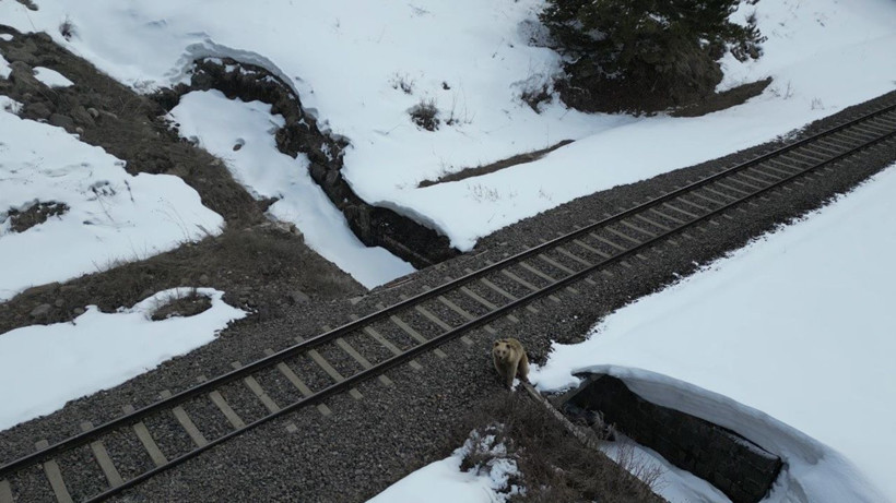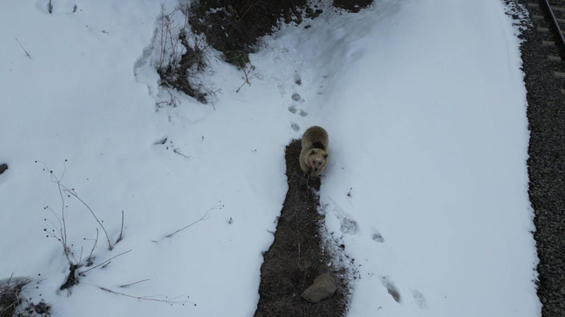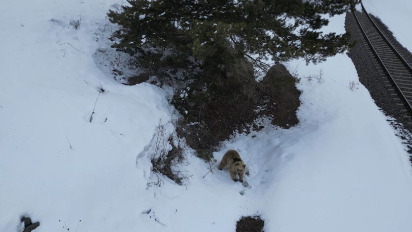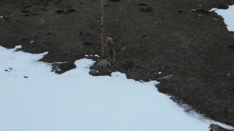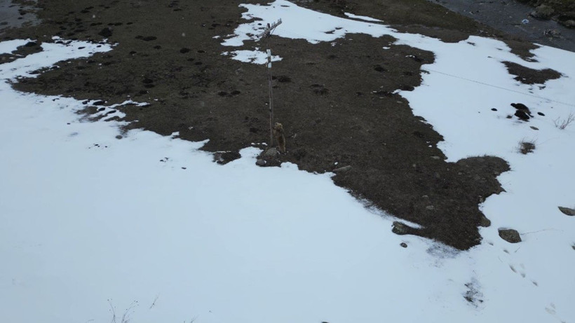 Kısa bir süre sonra uzaklaşmaya başlayan ayı, birkaç metre ilerledikten sonra yeniden durdu ve bir kez daha drona odaklandı.