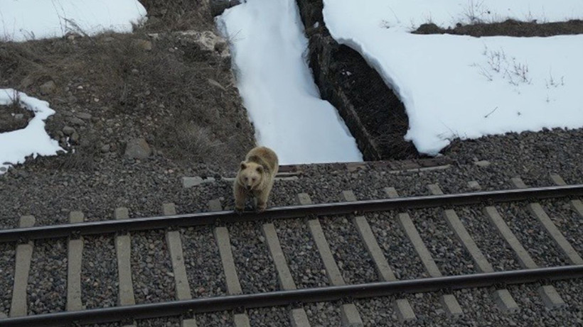 Ayı, önce havadan gelen vızıltıyı fark ederek aniden durdu.