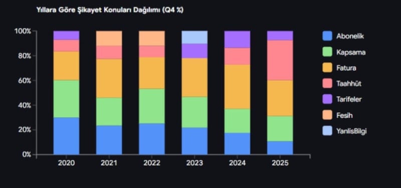 Raporda en dikkat çeken verilerin başında, 2024 yılında yüzde 19,50 seviyesinde olan kapsama alanı ve hizmet kalitesi şikayetlerinin 2025 sonunda yüzde 20,40’a yükselmesi yer alıyor.