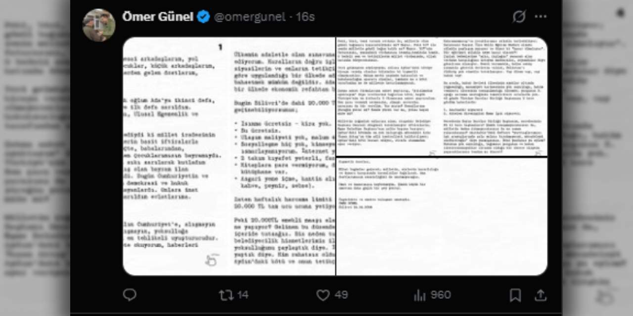 Mektubunun devamında Çerçioğlu’nun “çakma anket firmaları” ve “troller” aracılığıyla algı yönetimi yaptığını ifade eden Ömer Günel, çok konuşulacak meydan okumada bulundu.
