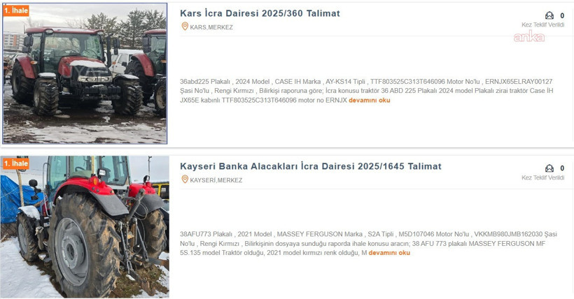 Haciz Yasağı: Üretimin devamlılığı için traktör ve arazilerin haczedilmesi önlenmeli.