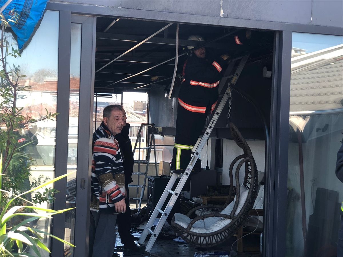 Harmanlar Mahallesi Vali Akı Caddesi Ihlamur Sokak’ta bulunan apartmanın teras kısmında henüz belirlenemeyen bir nedenle yangın çıktı.