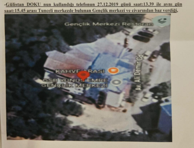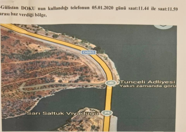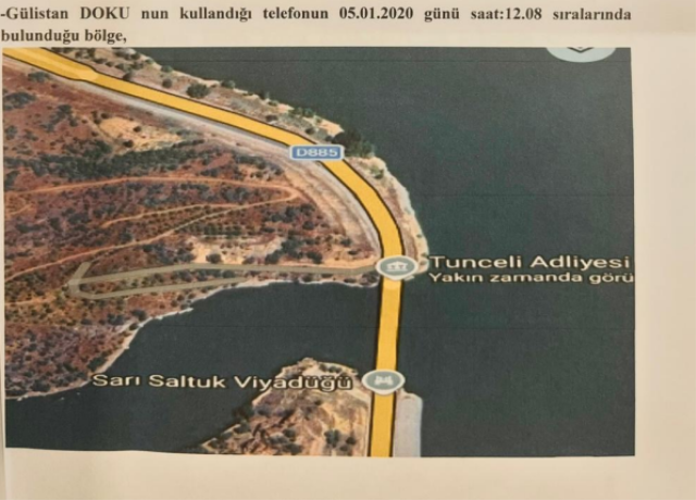 Öte yandan Gülistan Doku’nun son görüldüğü yer olan Sarı Saltuk Viyadüğü çevresinde dönemin Tunceli Valisi Tuncay Sonel’in oğlu Mustafa Türkay Sonel, Umut Altaş, Erdoğan Elaldı ve Şükrü Eroğlu’nun da aynı bölgede sinyal verdiği belirlendi.