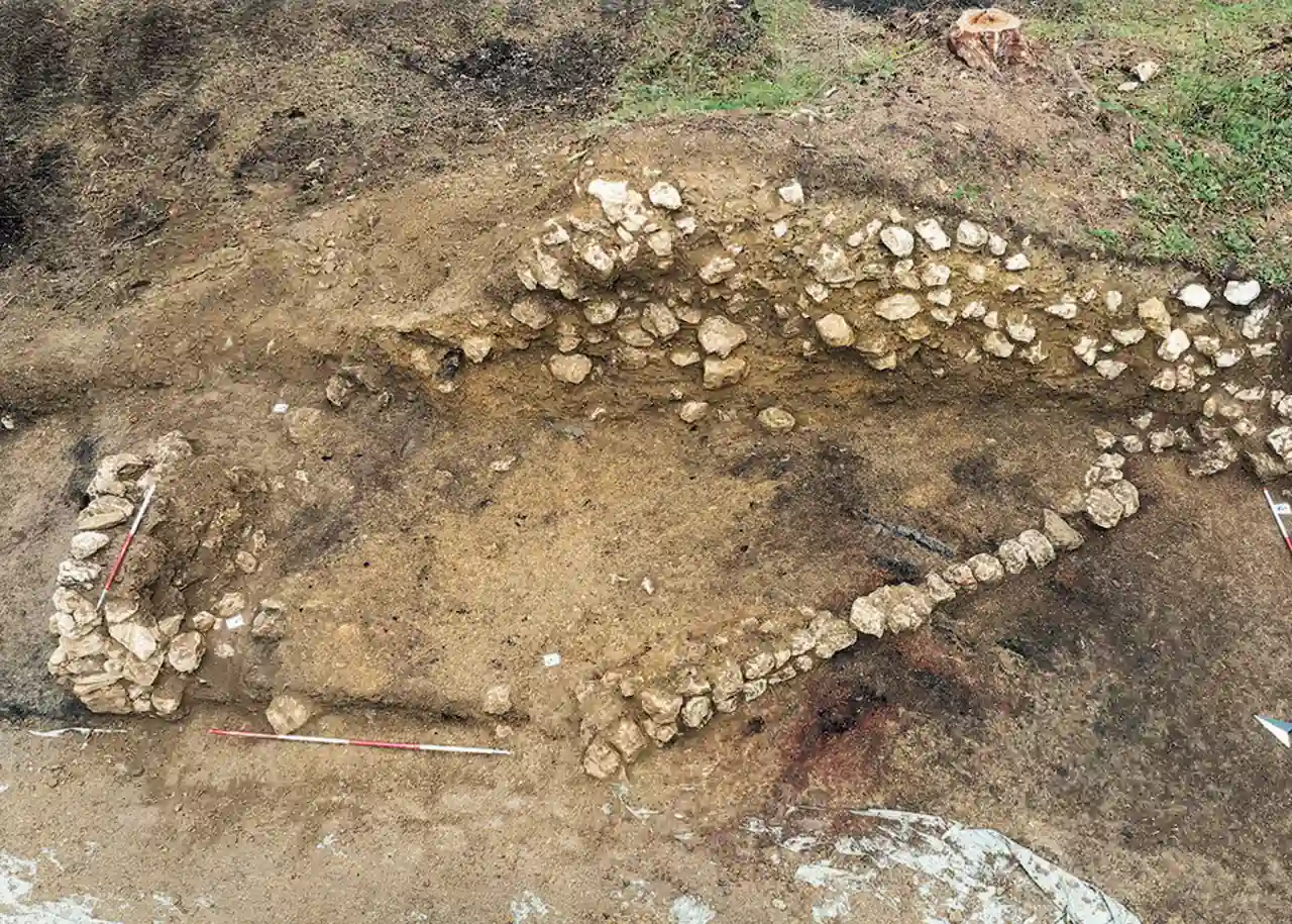 Duvarın dikdörtgen çekirdeğini oluşturan taşlar kaldırıldığında altta şaşırtıcı derecede iyi korunmuş yanmış bir yapının kalıntıları ortaya çıktı. Kömürleşmiş ahşap kirişler, yanık zemin ve yürüme yüzeyi belirgin biçimde görülebiliyordu.