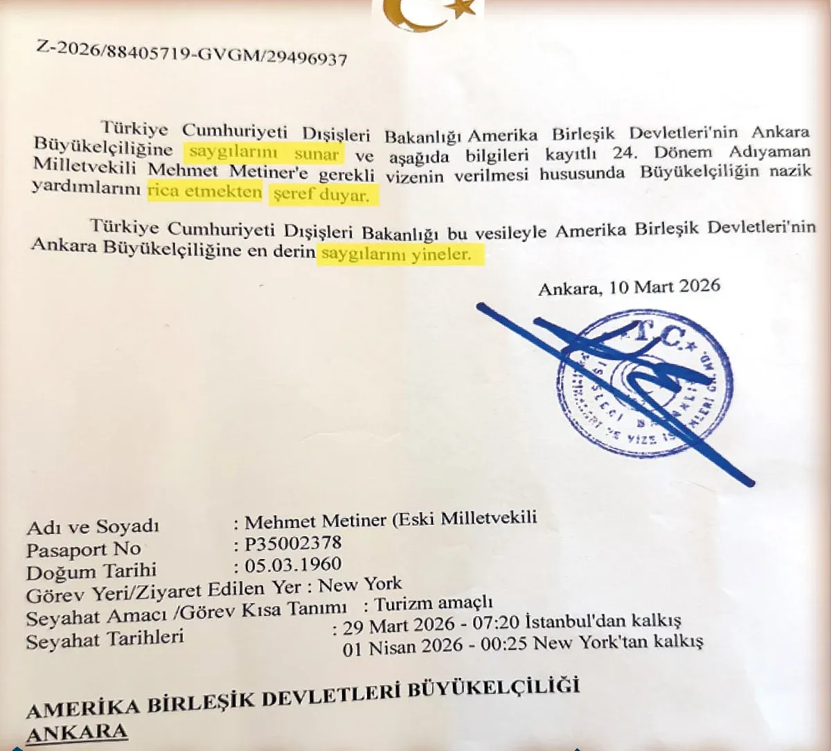 AKP’li Mehmet Metiner için ABD’ye Dışişleri Bakanlığı’ndan gönderilen mektup kamuoyunda tartışma yarattı.