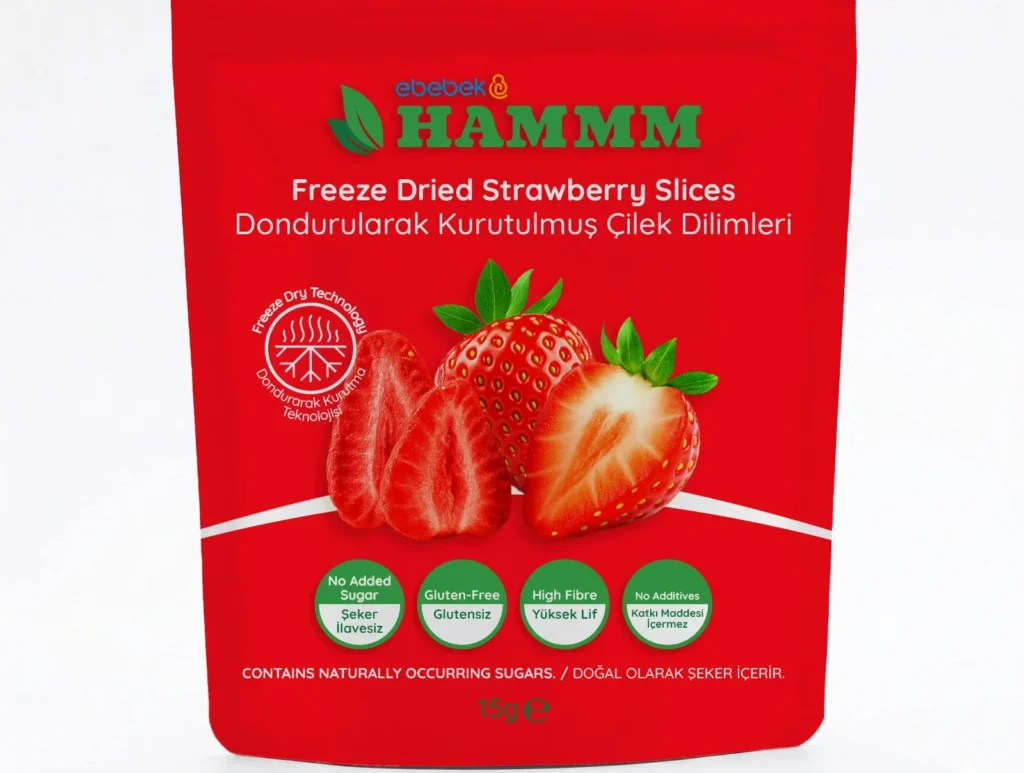 ebebek, dondurarak kurutma teknolojisiyle hazırlanan HAMMM Freeze Dried meyve dilimleriyle bebeveynlere pratik ve doğal bir atıştırmalık alternatifi sunuyor. %100 meyve içeriğine sahip ürünler, meyvenin doğal tadını ve aromasını koruyan özel üretim yöntemiyle hazırlanıyor.