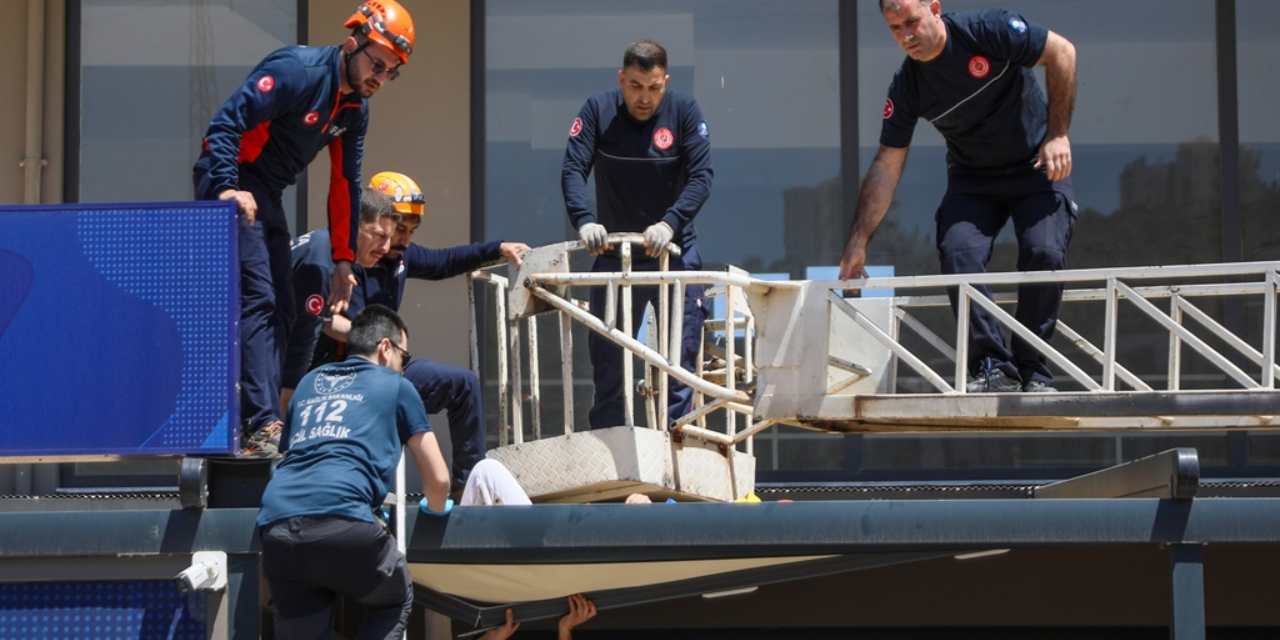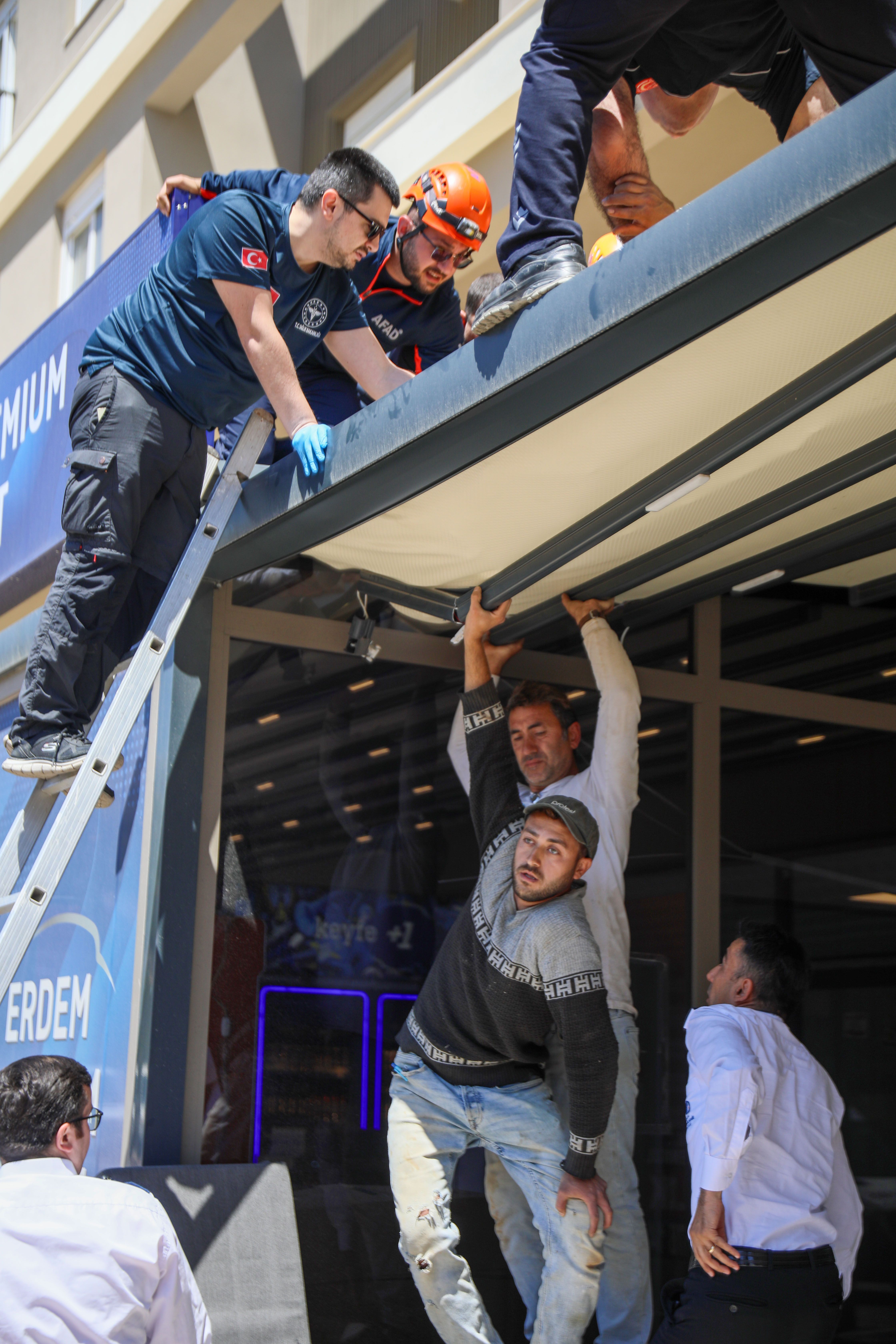 Ekipler, tentenin zarar görmemesi için vatandaşların da desteğiyle dikkatli bir çalışma yürüttü. Ardından Okay U. sedyeye alınarak itfaiyenin merdivenli sepetiyle aşağı indirilmeye çalışıldı. Bu sırada yoldan geçen bir kamyonetin kasasından da yardım alınarak sedyenin güvenli şekilde itfaiye aracına aktarılması sağlandı.