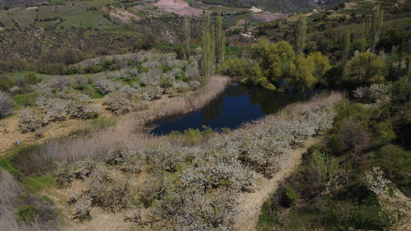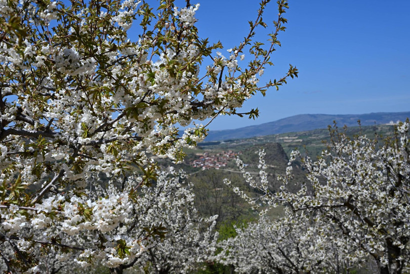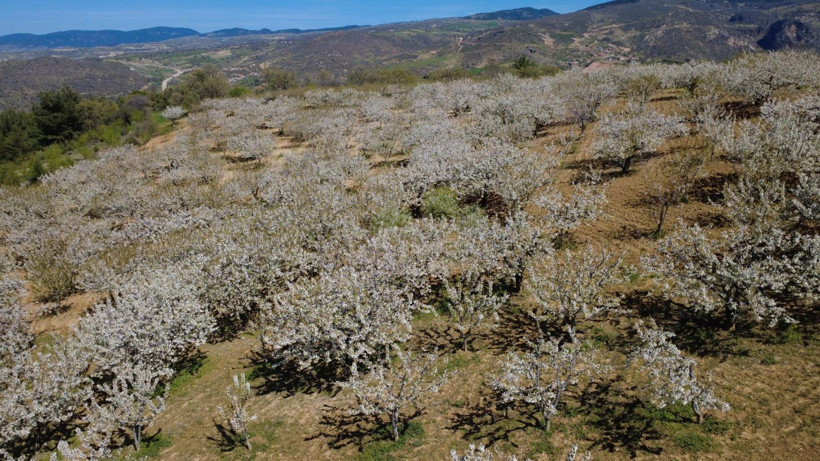 Nisan ayı itibarıyla çiçeklerini açan ve meyve tutumuna geçen 18 bin dekar alandaki kiraz bahçeleri, görsel şölen oluşturdu. Geçen hafta bölgede etkili olan soğuk hava dalgası ve zirai don riskine karşı çiftçiler seferberlik ilan etti.