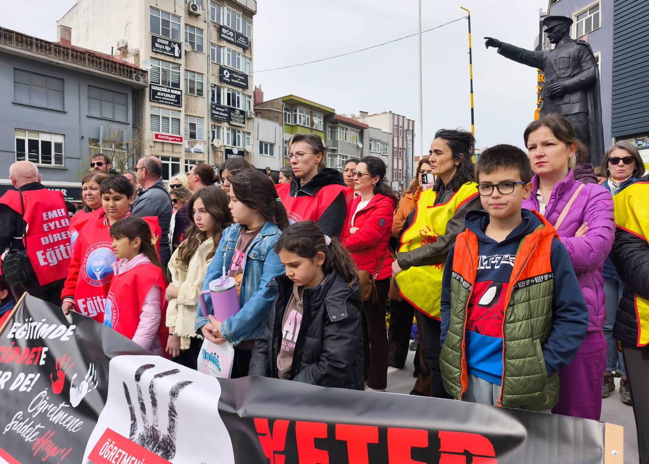 Öğretmenlere, ortaokul öğrencileri de katılarak destek verdi.