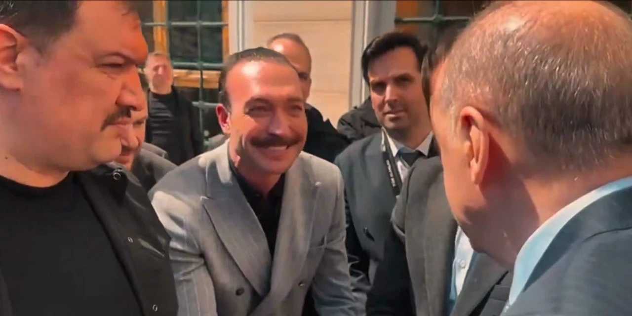 Erdoğan’ın yanında bulunan kişinin “Aaa öyle mi Cumhurbaşkanım” diyerek şaşırdığı görülürken, ünlü oyuncu “Nasılsınız Cumhurbaşkanım” diyerek Erdoğan’la selamlaştı. Erdoğan ise “Tebrik ediyorum” diyerek oradan ayrıldı.