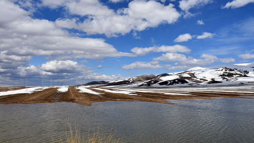 Kış ve baharın bir arada yaşandığı bölgede güzel manzaralar oluştu.