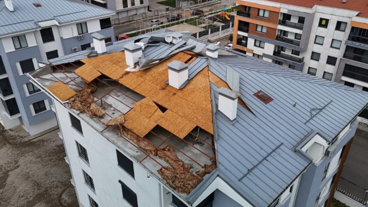 Fırtınanın şiddetiyle kontrolsüzce savrulan keskin sac parçalarının, çevredeki binaların dış cephelerine saplandığı görüldü. Mahalle sakinleri, parçaların düşüş hızı ve sertliği nedeniyle yaşanan durumu “adeta bir mermi yağmuru” olarak nitelendirdi.