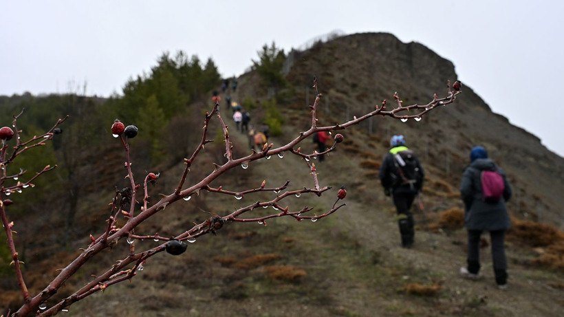 Tarihi Roma yollarından geçen, peri bacaları ve gürül gürül akan şelalelere tanıklık eden 24 kişilik sporcu kafilesi, sisli ve karlı doğada 10 kilometrelik parkuru tamamladı.