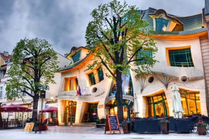 Eğri Ev, Sopot’un en meşhur yaya yolu olan Bohaterów Monte Cassino caddesi üzerinde yer alır. Bu cadde her yıl binlerce turisti ağırlar ve Eğri Ev, tartışmasız caddenin en çok dikkat çeken, en çok selfie çekilen noktasıdır. Eğer bir gün gidersen, binaya sadece gündüz bakma. Akşam ışıklandırmasıyla beraber bina, sanki her an canlanacakmış gibi çok daha fantastik bir görünüme bürünüyor.