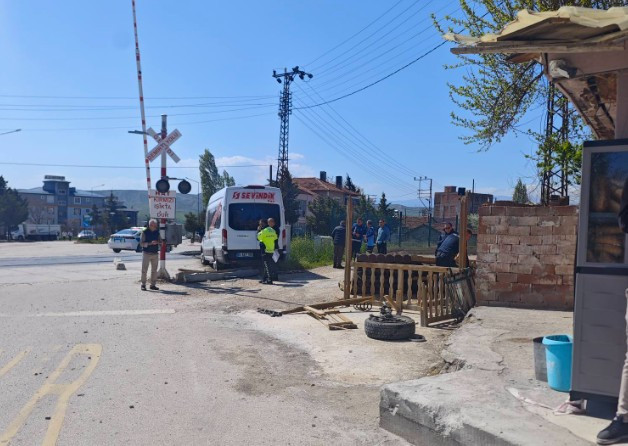 Kaza, ilçe merkezinde hemzemin geçide yakın kavşakta meydana geldi. Seyir halindeki servis minibüsü, sürücüsünün direksiyon hakimiyetini kaybetmesi sonucu kontrolden çıktı.