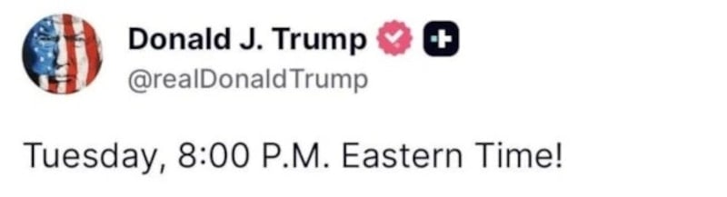Daha önce Hürmüz Boğazı’nı 48 saat içinde açmaması durumunda İran’ı tehdit eden Trump, paylaşımında, “Salı günü ABD Doğu Yakası saatiyle 20.00’de (Türkiye saatiyle 8 Nisan Çarşamba 03.00)” ifadesine yer verdi.