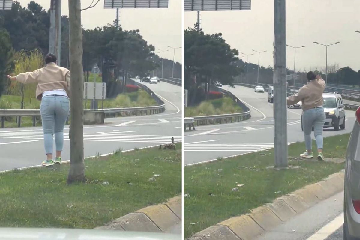 İstanbul trafiğinde bir anne ördek, yavrularıyla birlikte yolun karşısına geçmeye çalıştı. Ördekleri gören bir kadın trafiği durdurarak karşıya geçmelerini sağladı.