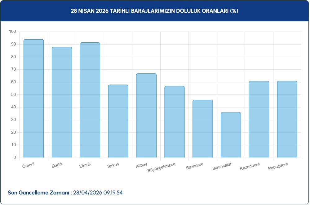 İSTANBUL BARAJ DOLULUK ORANLARI (28 NİSAN 2026)