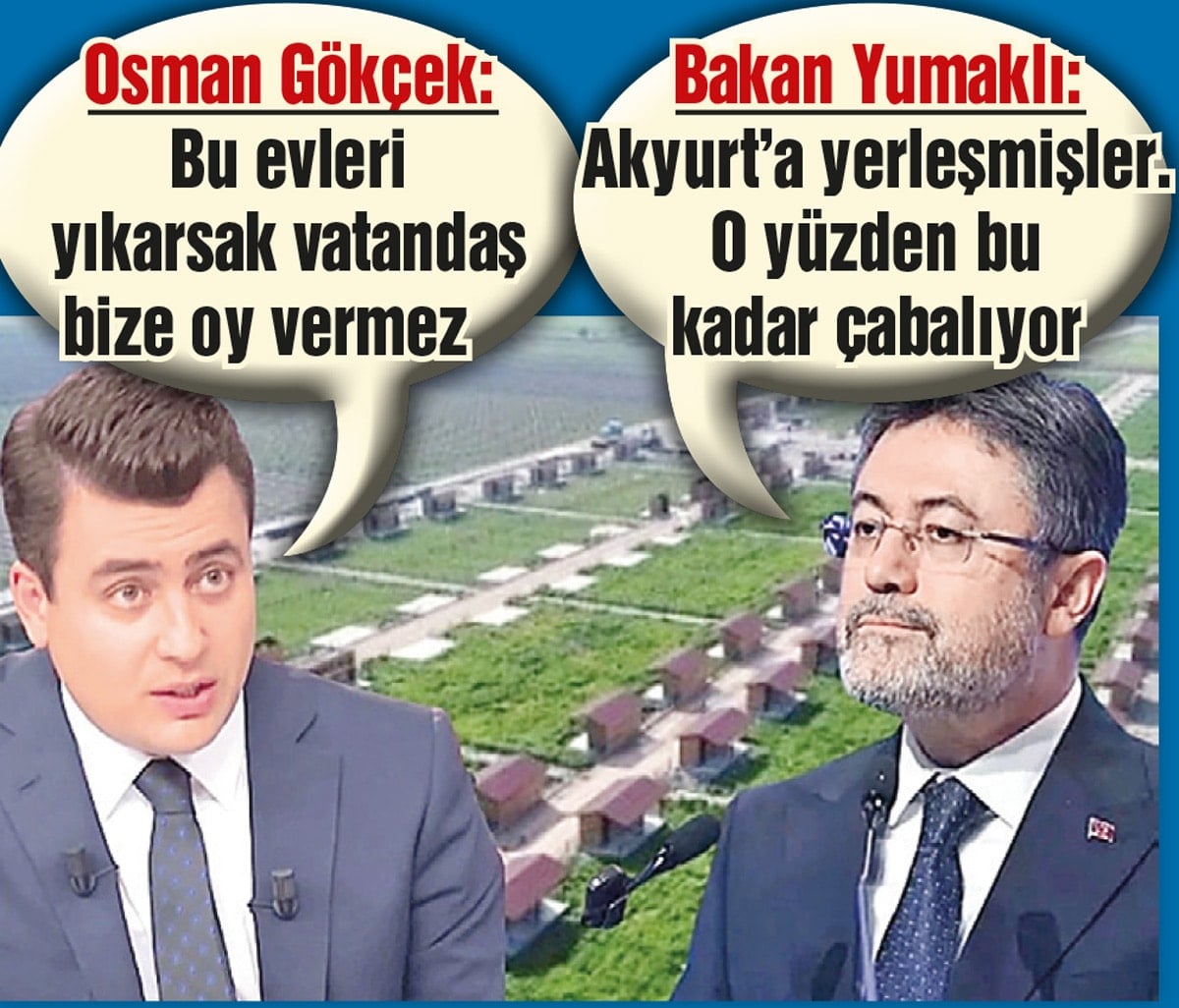 AKP MKYK’sında yapılan son toplantıda ise Osman Gökçek “Bu evleri yıkarsak vatandaş bize oy vermez” ifadelerini kullanmıştı.