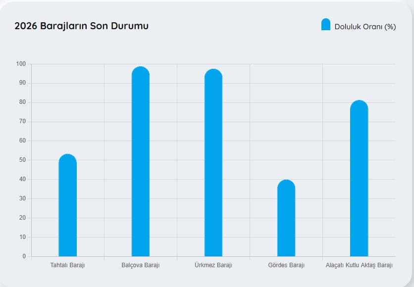 16 Nisan 2026 itibarıyla İzmir’e su sağlayan barajlardaki doluluk oranları şöyle: