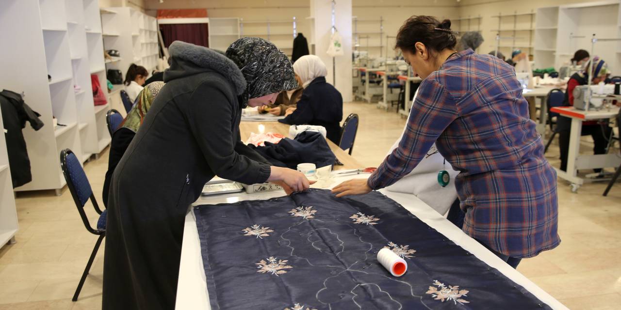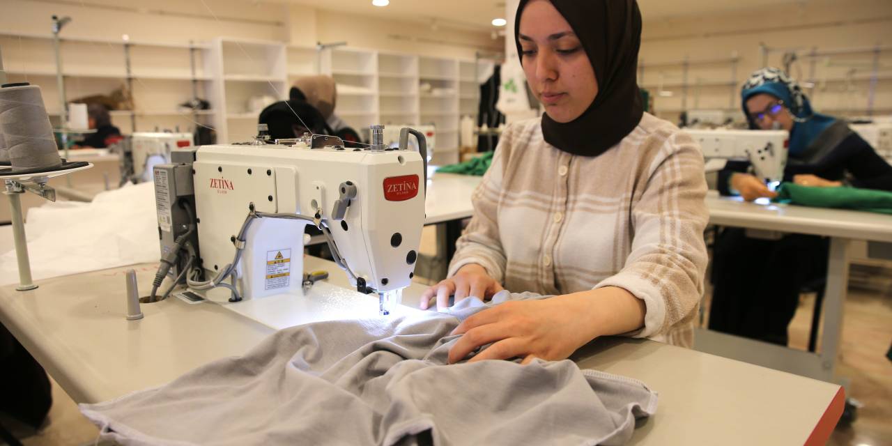 Haftanın 5 günü devam eden eğitimlerle, daha önce ev hanımı olan 50 kursiyer; dikiş, overlok, elbise tasarımı ve kesim gibi alanlarda uzmanlaşıyor.