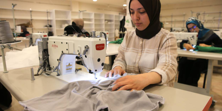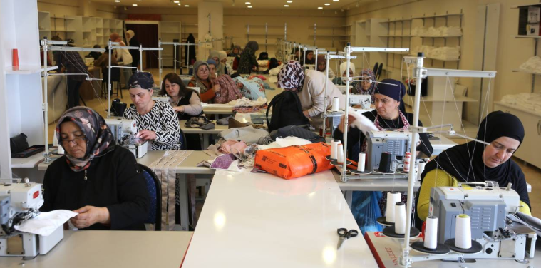 Haftanın 5 günü devam eden eğitimlerle, daha önce ev hanımı olan 50 kursiyer; dikiş, overlok, elbise tasarımı ve kesim gibi alanlarda uzmanlaşıyor.