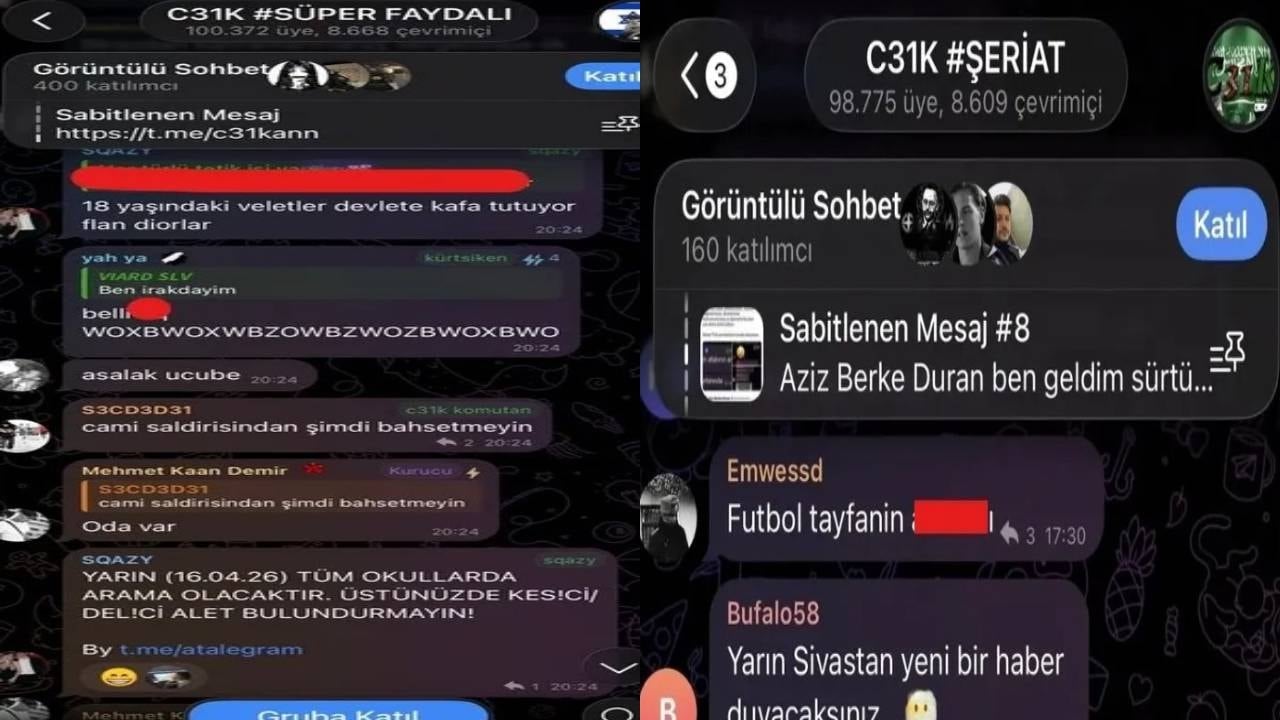 Kahramanmaraş ve Şanlıurfa’daki okul saldırılarının ardından, sosyal medya üzerinden organize olan çeteler yeniden gündeme geldi. Özellikle Telegram’da faaliyet gösteren “C31K” adlı grup başta olmak üzere, tehdit ve provokasyon içeren paylaşımlar nedeniyle birçok ilde gözaltı kararları alındı. Okullar, camiler ile güvenlik güçlerini hedef alan saldırı planlarının konuşulduğu bu çetenin 100 bin üyesi bulunuyor.